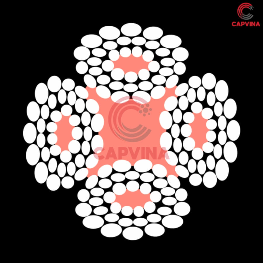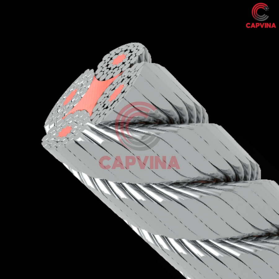 Cáp gồm 4 tao (strand) bện cân đối quanh lõi trung tâm, giúp ổn định kết cấu khi chịu tải.