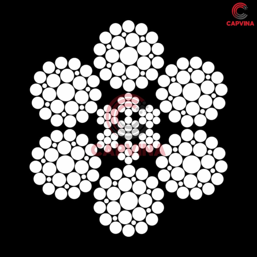 6 tao cáp (6 strands): Sáu tao cáp được bện xoắn quanh lõi trung tâm giúp phân bổ tải trọng đồng đều và tăng độ ổn định khi làm việc.