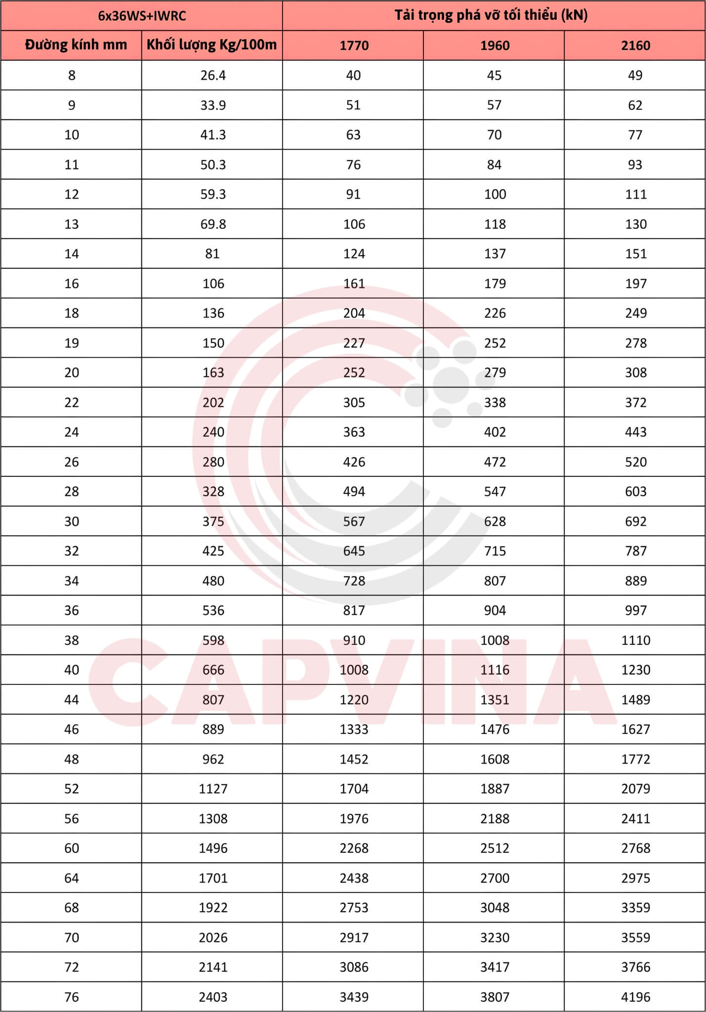 Trong các ngành nâng hạ, vận chuyển và khai thác công nghiệp, việc lựa chọn loại cáp có độ bền cao và khả năng làm việc ổn định là yếu tố cực kỳ quan trọng. Cáp thép Capvina 6x36WS IWRC là dòng cáp được nhiều doanh nghiệp tin dùng nhờ cấu tạo chắc chắn, khả năng chịu tải tốt và tuổi thọ cao khi làm việc trong môi trường khắc nghiệt.