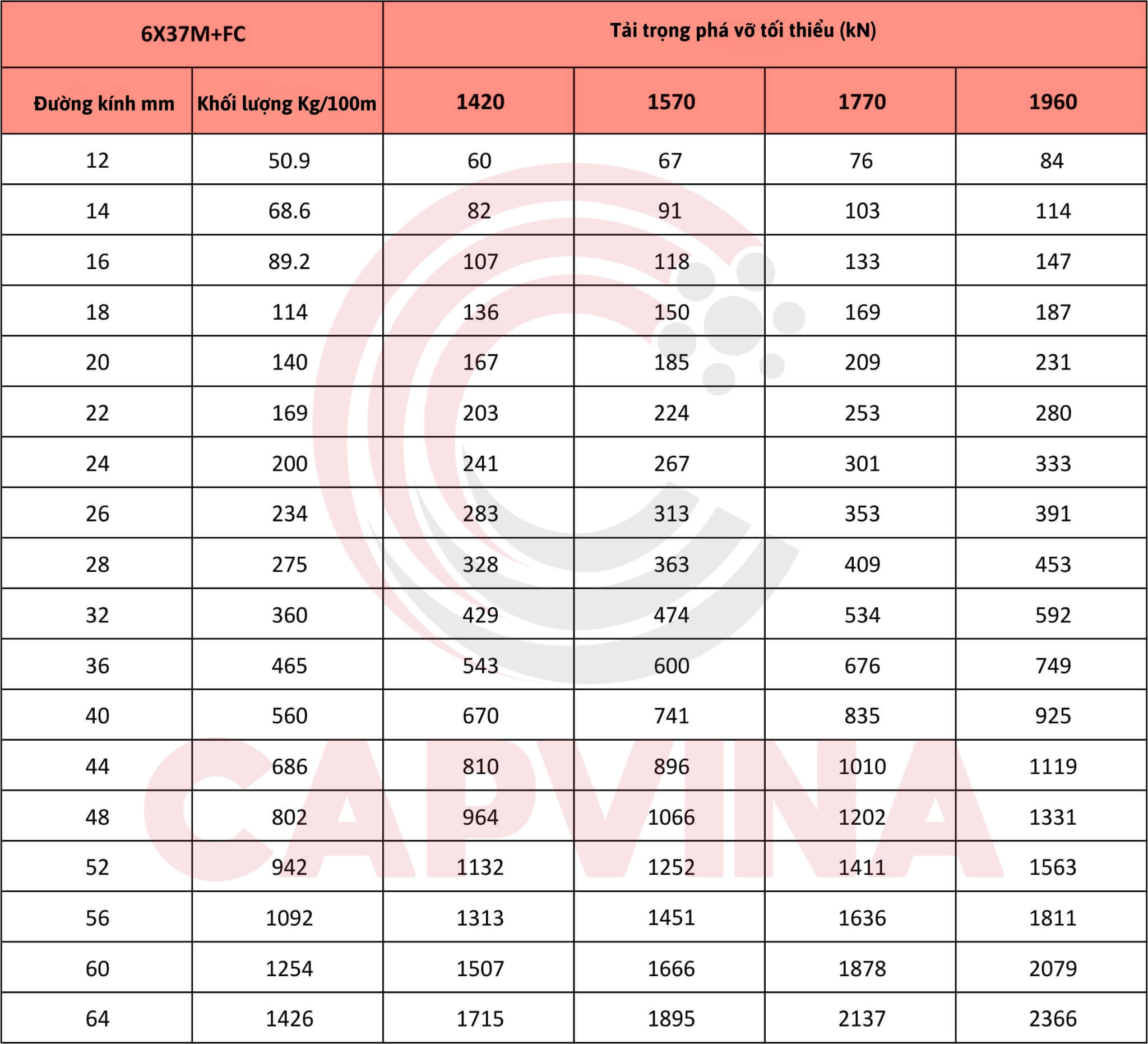 Cáp Thép Capvina 6x37M FC