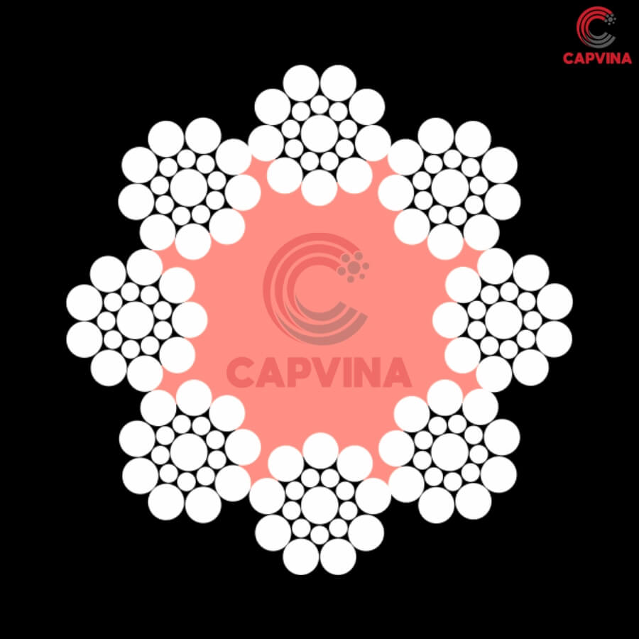 Cấu trúc sợi: 8x19S FC (8 tao cáp, mỗi tao gồm 19 sợi thép).