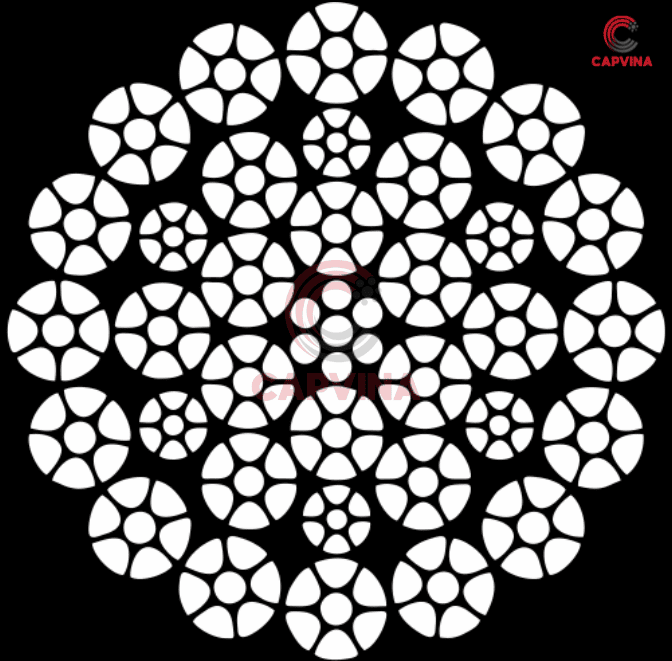 Cáp Thép Nén Capvina 35×7 WSC là dòng cáp thép hiệu suất cao được thiết kế với cấu trúc 35 tao cáp, mỗi tao gồm 7 sợi thép bố trí theo dạng (6-1). Sau quá trình bện, các tao cáp được nén ép (compacted) nhằm tăng mật độ kim loại và tạo bề mặt cáp chặt hơn so với cáp thông thường.