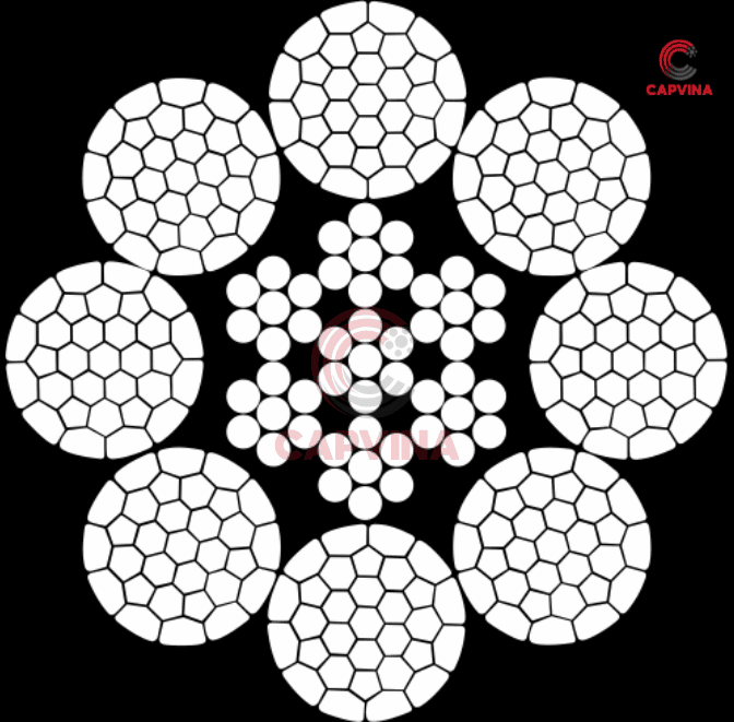 Cấu trúc 8x31WS: gồm 8 tao, mỗi tao 31 sợi thép. Các sợi thép được sắp xếp theo kiểu Warrington Seale (WS) giúp tăng khả năng chịu lực và hạn chế mài mòn giữa các sợi.