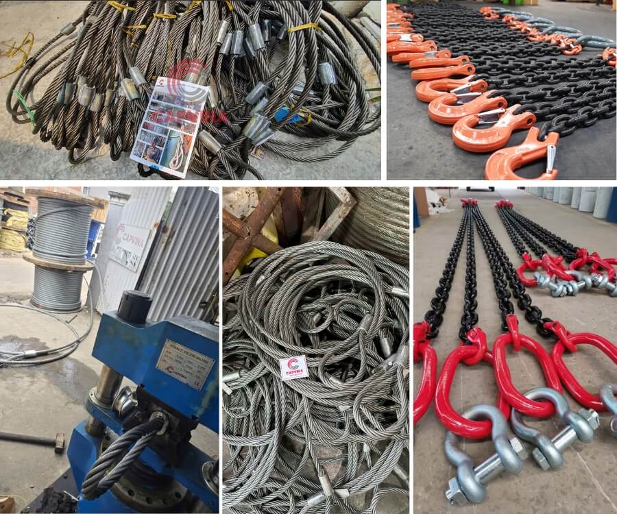 Danh mục sản phẩm toàn diện: Từ cáp thép, lưới cáp sling cáp bấm chì, phụ kiện nâng hạ đến vật tư tàu biển chuyên dụng – CAPVINA cung cấp đầy đủ chủng loại, quy cách và tải trọng.
