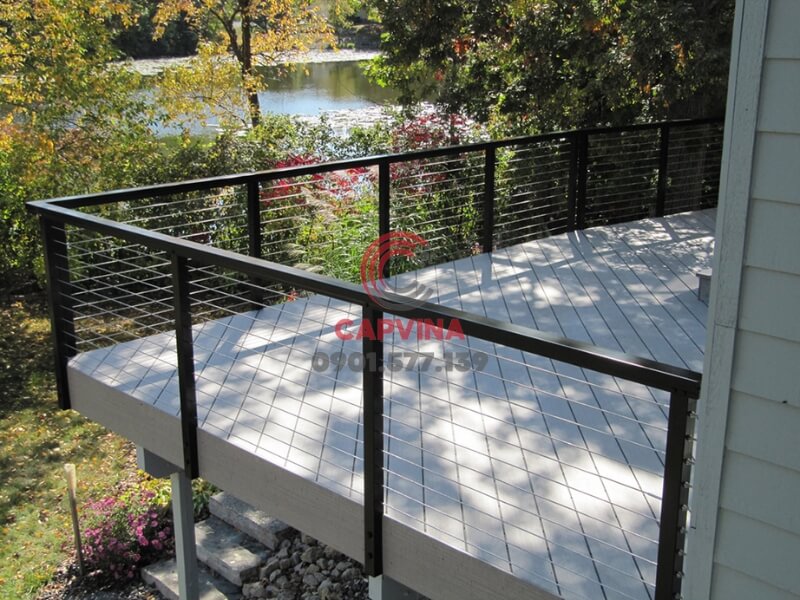 - Lan can cầu thang, ban công, hành lang: Giúp hệ thống dây cáp luôn căng đều, chắc chắn, đồng thời tạo điểm nhấn hiện đại cho không gian.