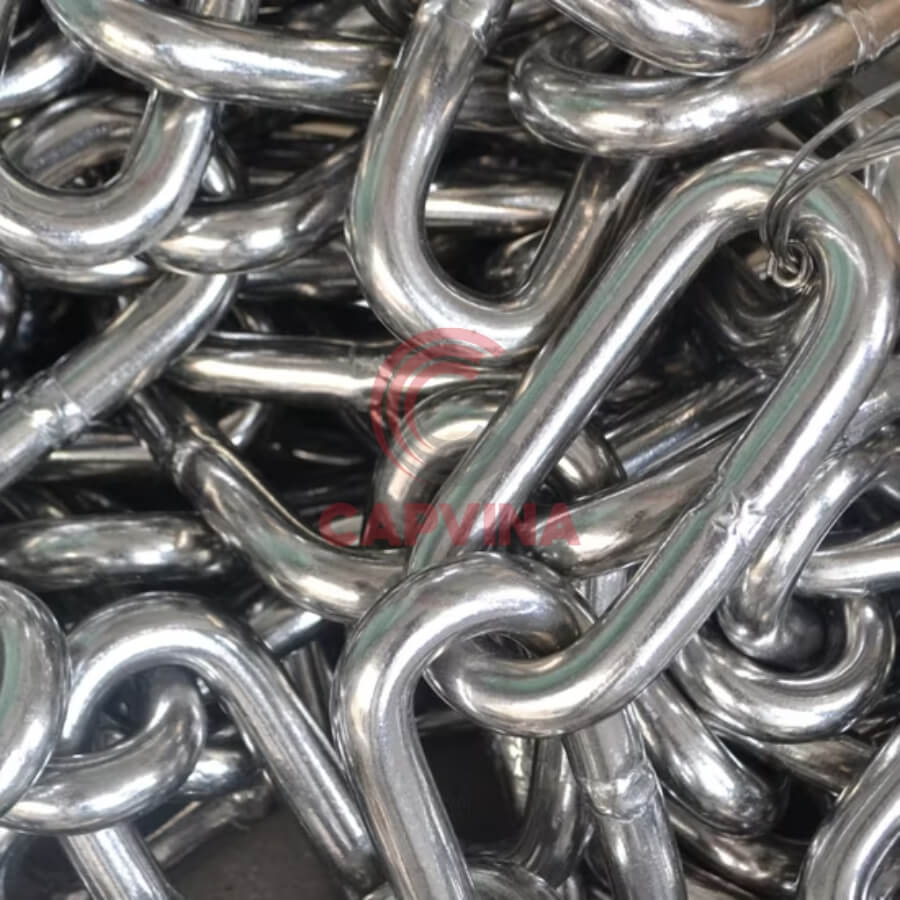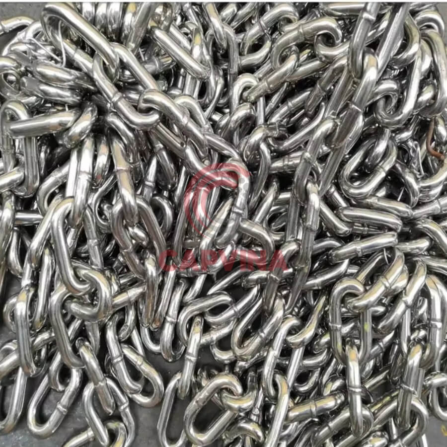 - Dễ kết hợp với nhiều phụ kiện nâng hạ: Xích inox 22mm có thể lắp cùng ma ní, móc cẩu, tăng đơ, khóa nối mà không cần gia công phức tạp, giúp việc thi công nhanh và an toàn hơn.